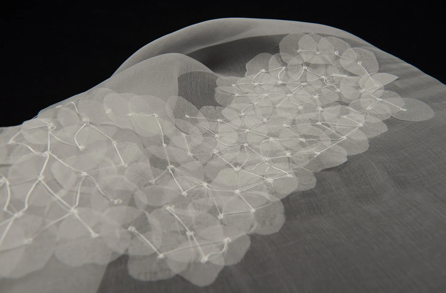 The designs translate into collections which are formed across a range of fabrics with techniques including; hand guided Irish machine work, beading, digital embroidery and fabric manipulation. Collections employ considered techniques, palettes and fabric choices that come together to inspire both buyers and designers.